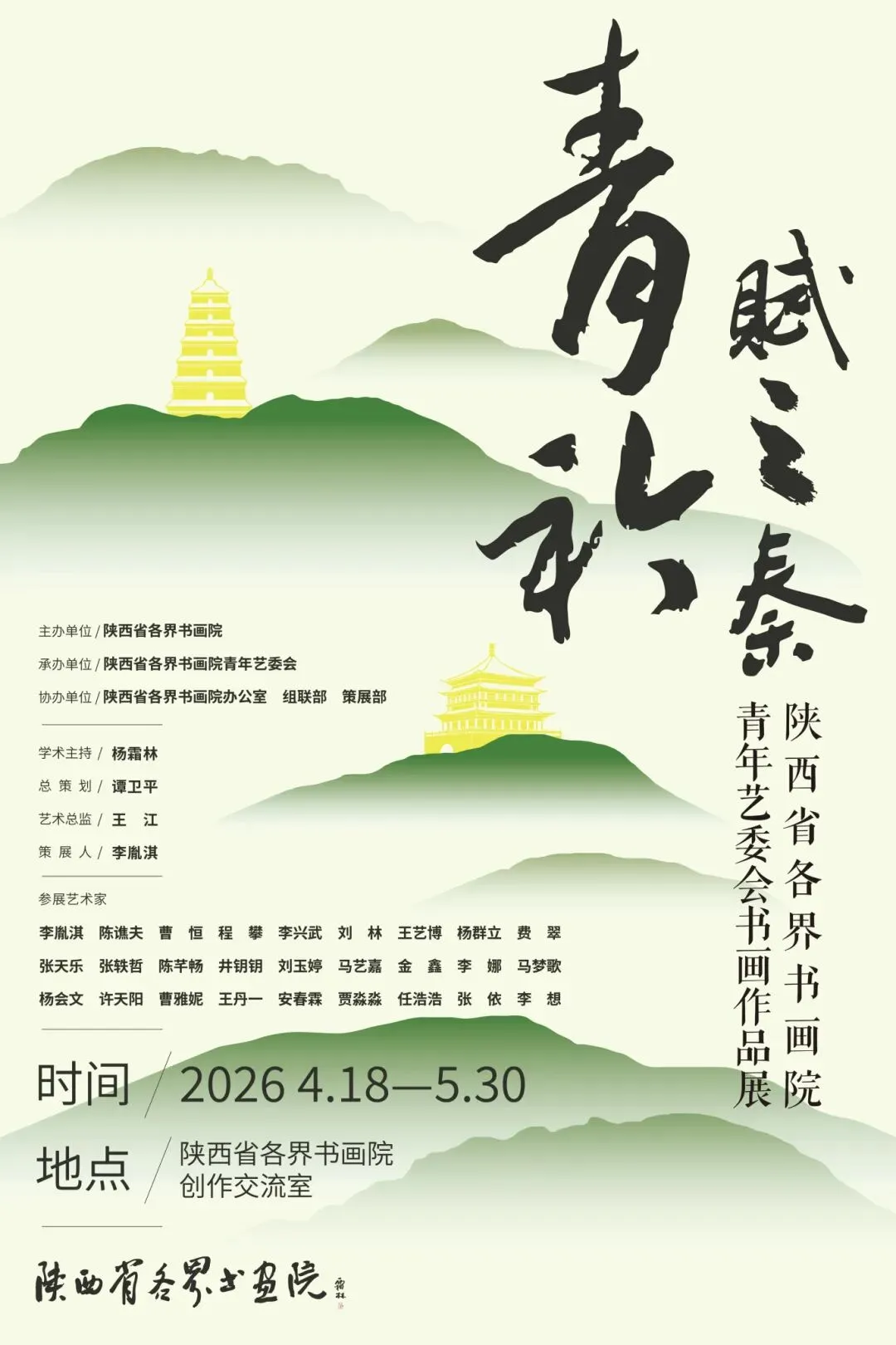 时序入春,长安花木深。古城文脉氤氲之际,陕西省各界书画院青年艺委会书画作品展即将启幕。