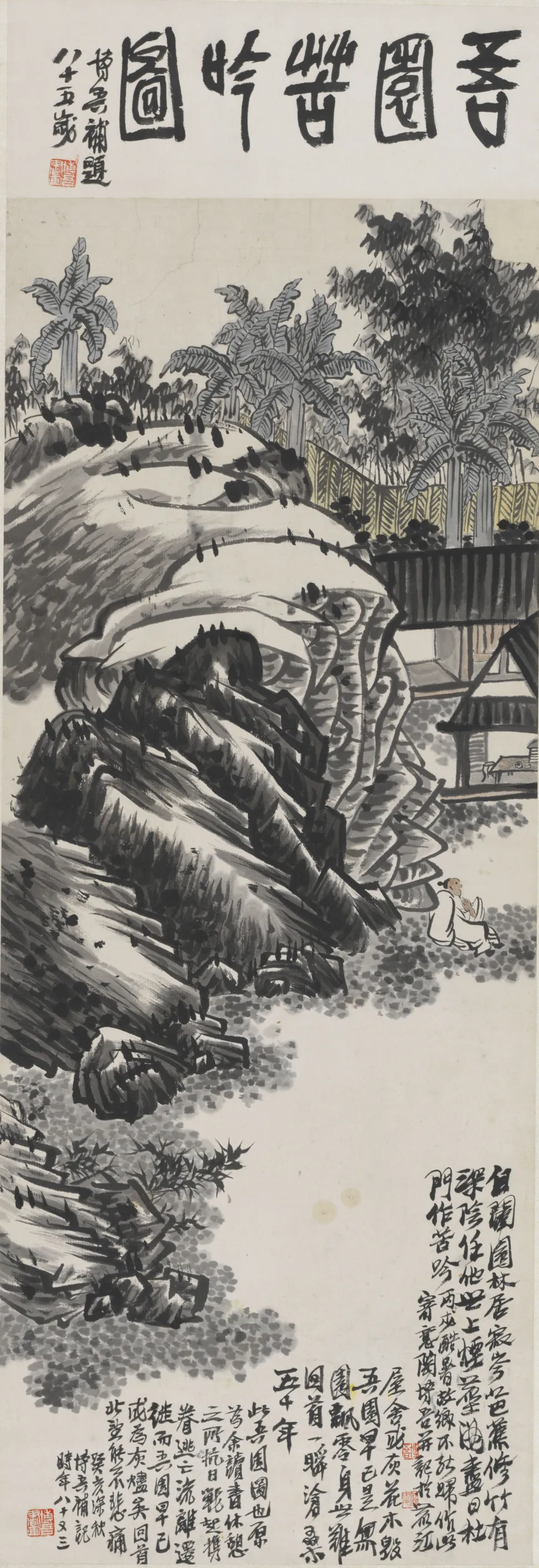 释文:吾园苦吟图。陶博吾补题八十五岁。