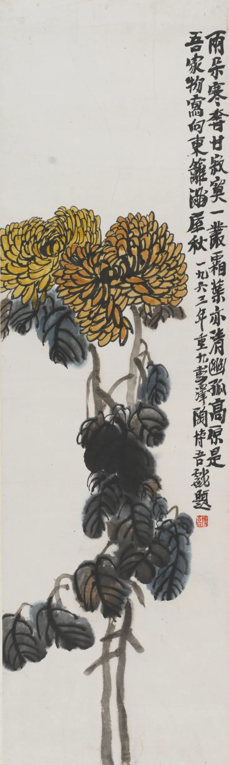 《东篱满屋秋》1963年 纸本设色 81×25cm
