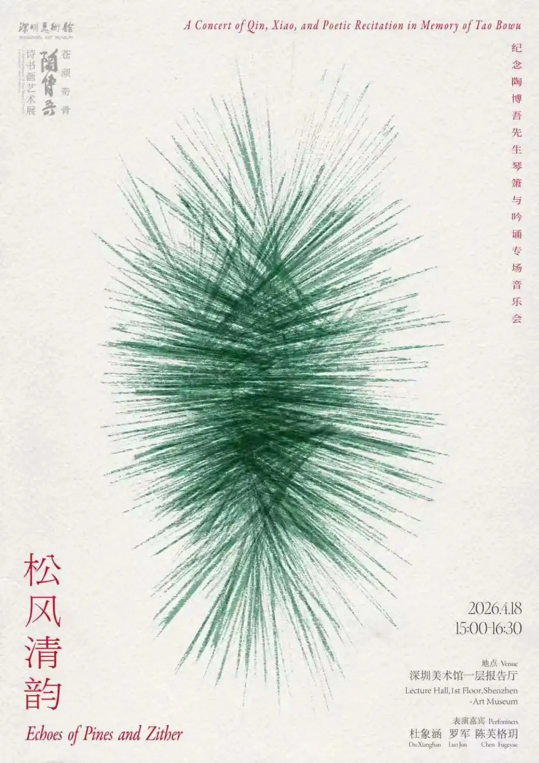 专场音乐会将于2026年4月18日(周六)15:00-16:30在深圳美术馆一层报告厅举行,活动免费,需小程序预约。详情请关注后期公众号推送。