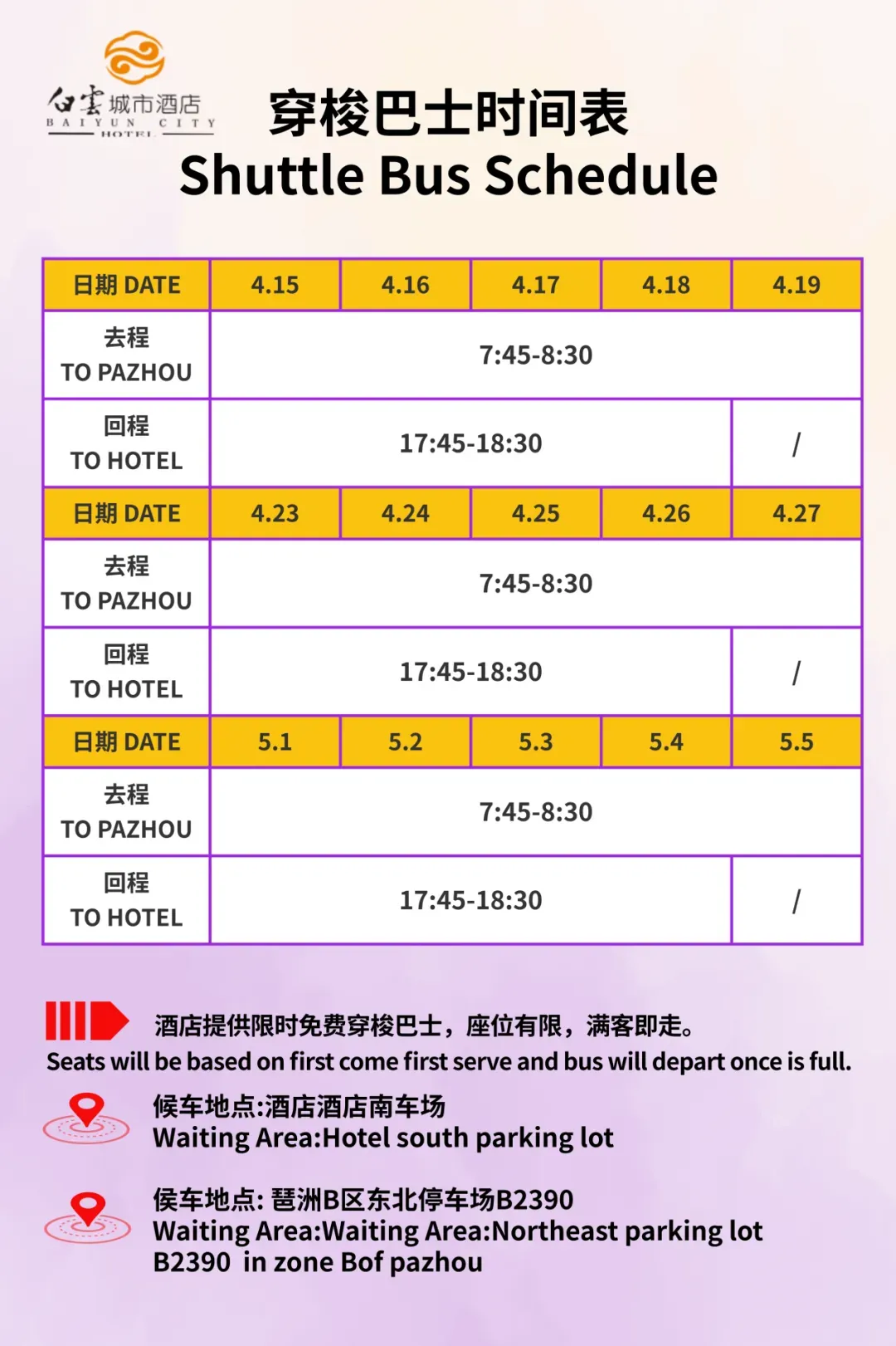 Board the shuttle on the left side of the main entrance of the Baiyun Building