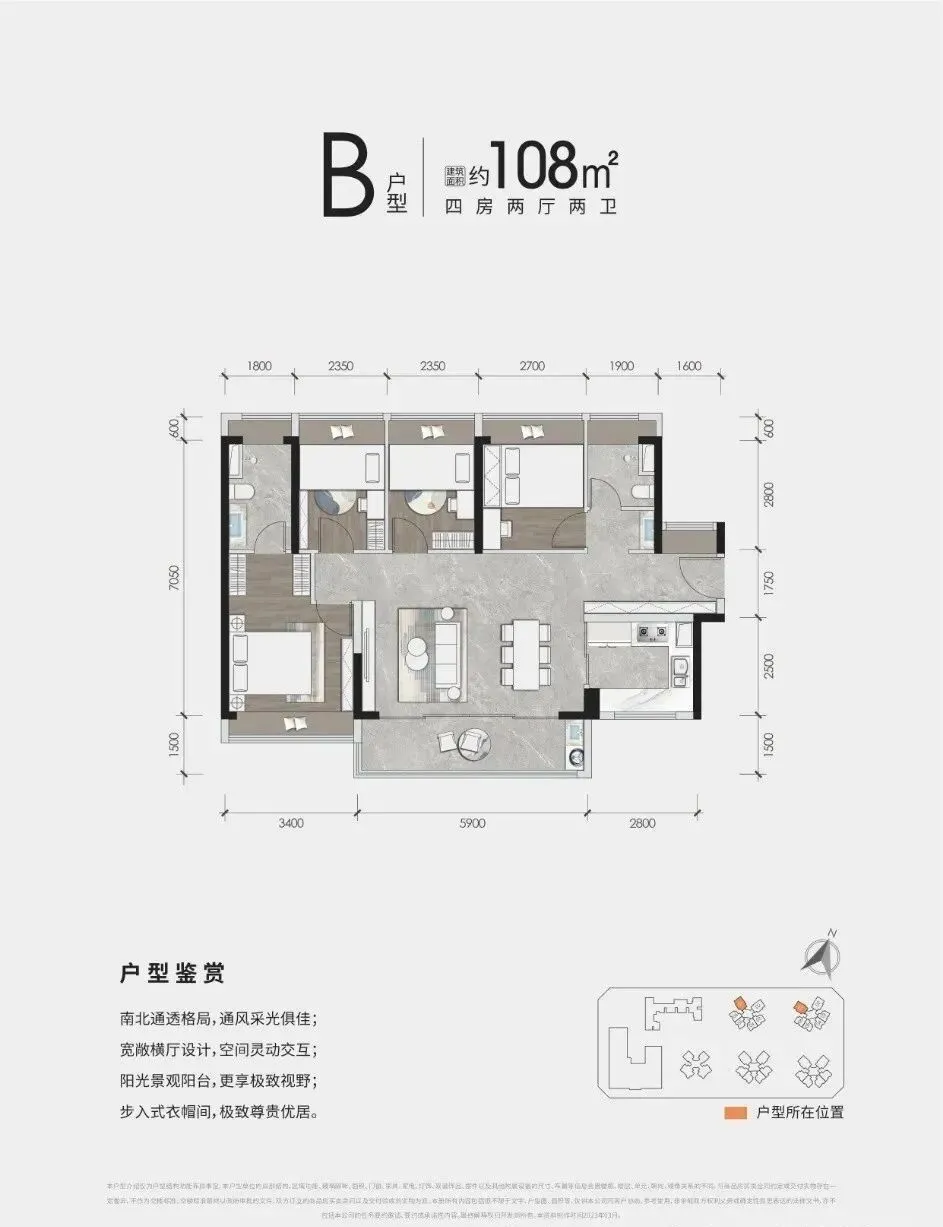 ▫️108㎡四房两卫二卫-514万-550万/套,首付105万起