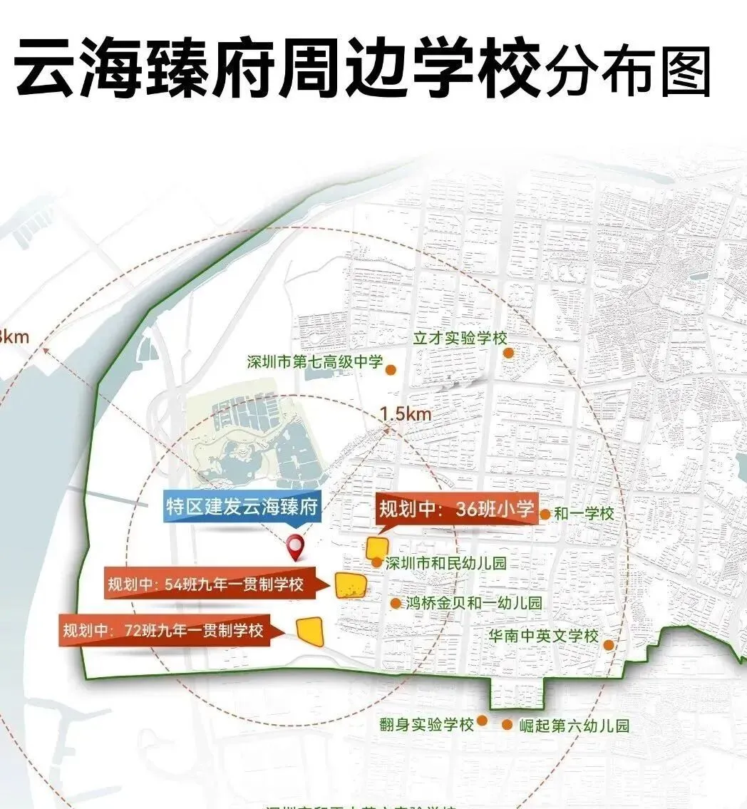 家楼下的18班幼儿园(在建)、周边还有深圳沙井街道会展中心学校(规划)、一所36班制小学和一所54班九年一贯制学校。