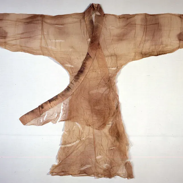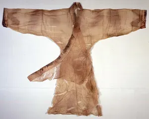 素纱单衣为西汉时期文物,1972年出土于湖南省长沙市马王堆一号汉墓,墓主人为西汉长沙国丞相、轪侯利苍之妻辛追。