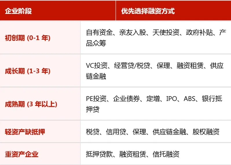 成长期(1-3年) // VC投资、经营贷/税贷、保理、融资租赁、供应链金融