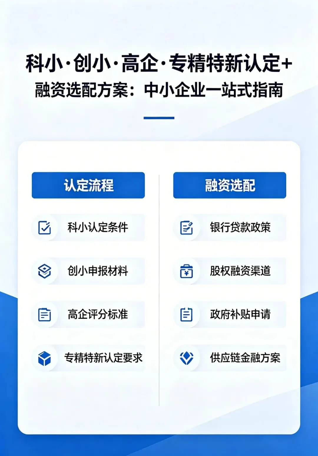 从“科技型中小企业”的基础认定,到“专精特新”的顶尖认证,每一步资质的提升,都在为企业开启一扇更宽敞的融资大门。