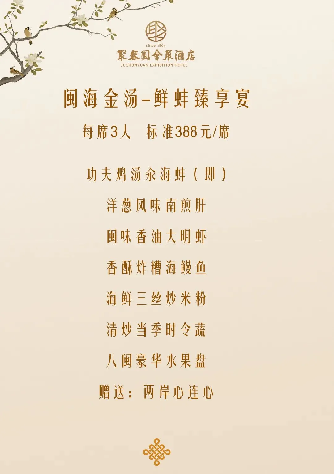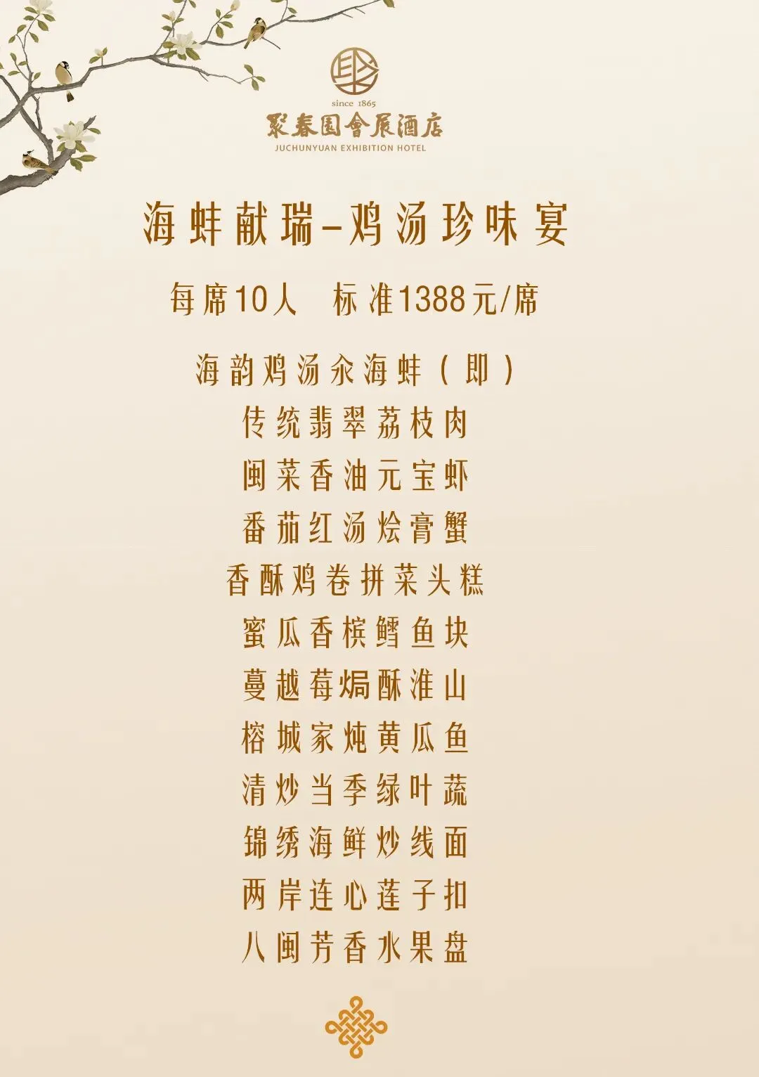 国宴菜单的庄重典雅,“西施舌”传说的浪漫婉转,都不及一口鲜汤入喉的温润动容。这碗被誉为 “闽菜之后” 的珍馐,穿越百年岁月,至今依旧滚烫鲜香。聚春园会展酒店,静候您亲临品鉴。