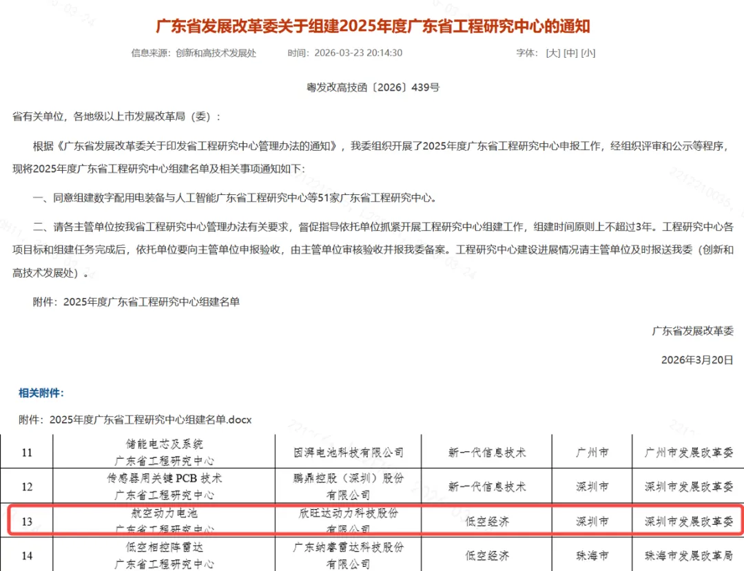 近日,广东省发展和改革委员会近日发布通知,欣旺达将牵头组建“航空动力电池广东省工程研究中心”,重点研发高安全、高比能的固态航空动力电池技术。该中心将瞄准航空器动力电池这一前沿领域,重点研发高安全、高比能的固态航空动力电池,旨在突破关键技术瓶颈,为广东省打造世界级低空制造高地、培育新质生产力提供核心动力支撑。