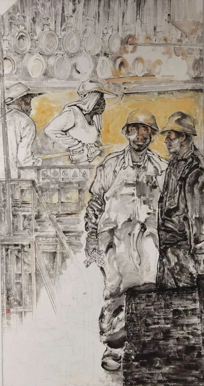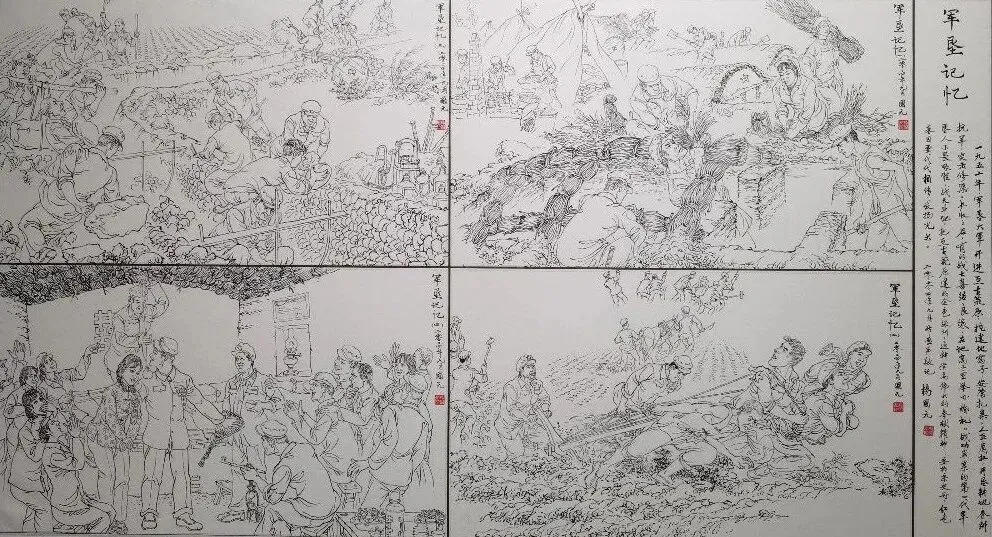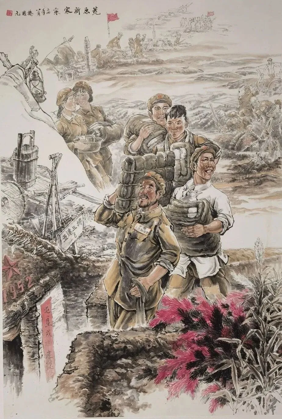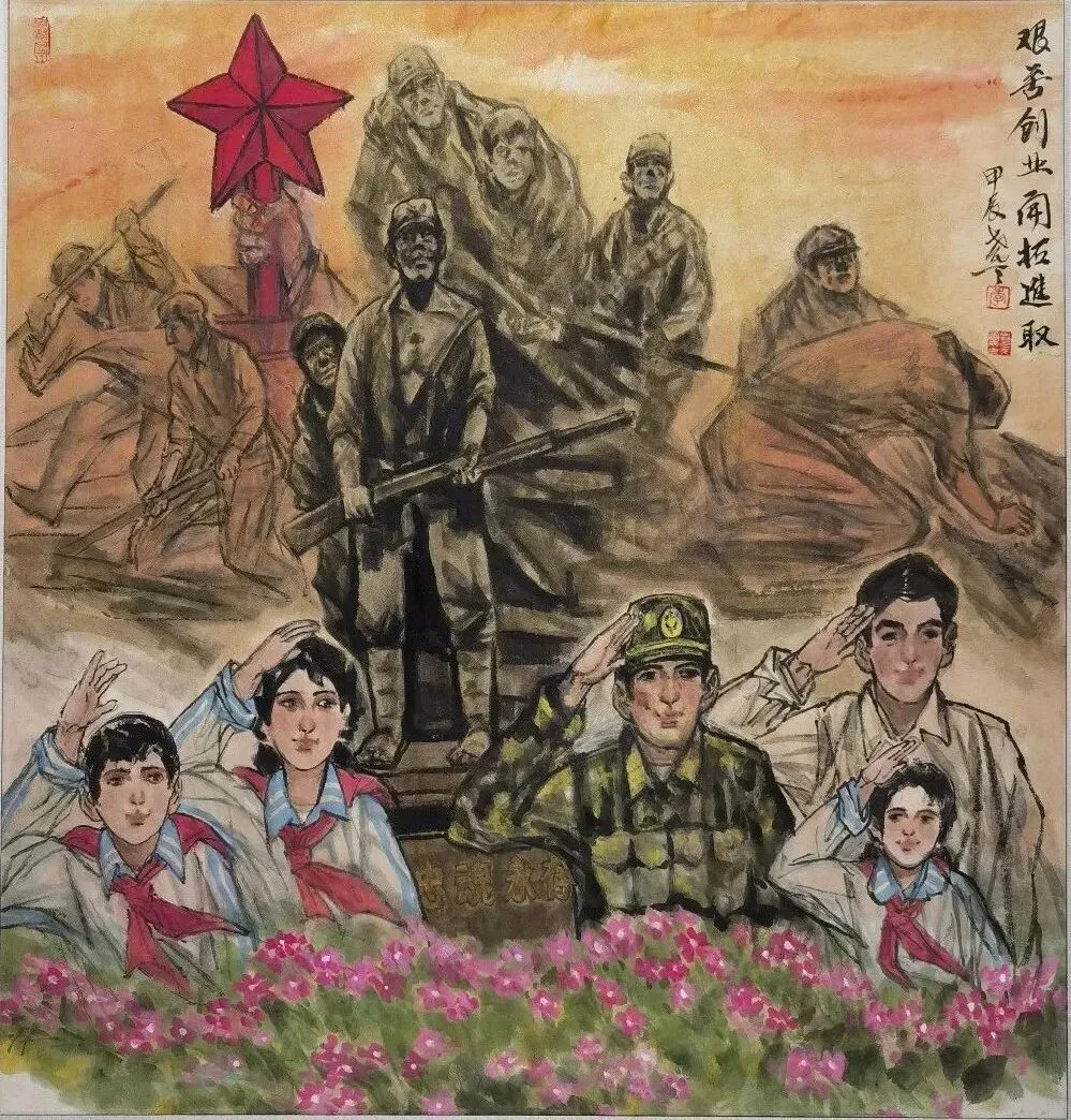 该篇章通过12幅人物画作品,一方面讲述老一辈兵团人为中国人民解放事业和边疆建设,抛头颅、洒热血、奉献青春芳华的革命精神和光荣传统;另一方面寓意党的十八大以来,特别是迈入新时代新征程,师市各族干部职工群众在兵团精神和胡杨精神、老兵精神的感召下,在推进中国式现代化兵团实践中“奋进新征程,建功新时代”的生动场景、感人故事。
