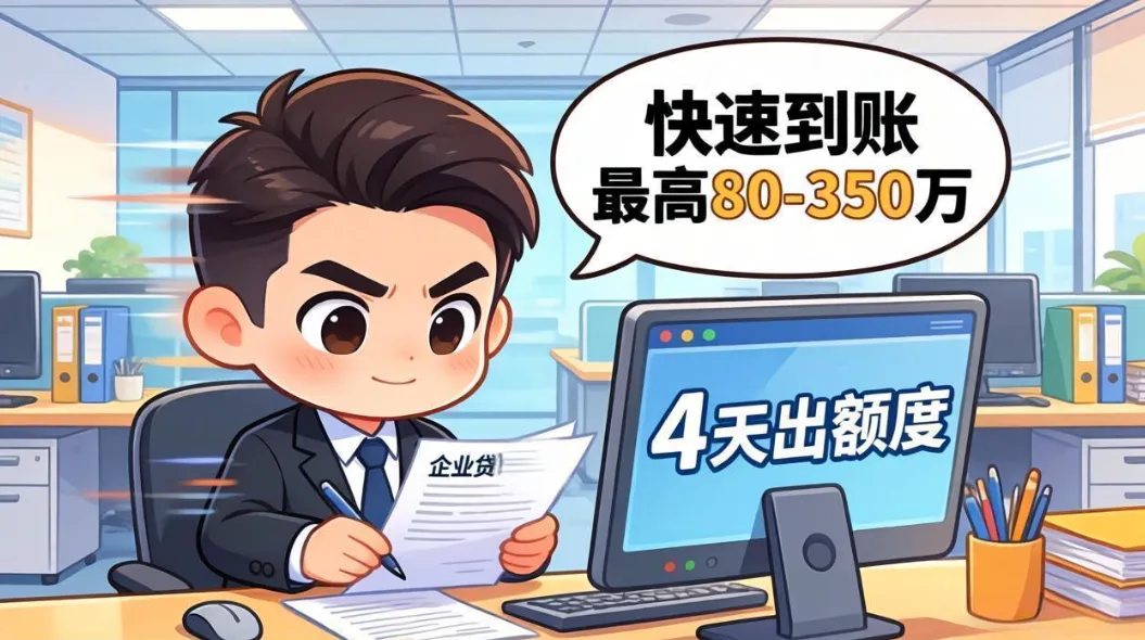 工商、农业、招商、中信、浦发、农商企业贷,最高 80-350 万,4 天出额度,快速到账,中小微快人一步!