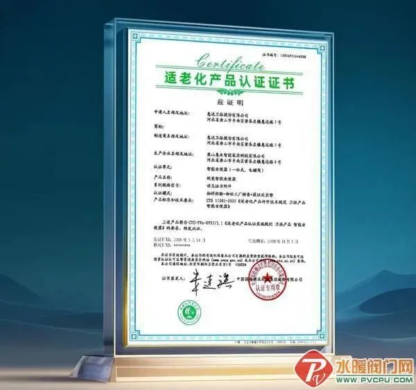 近日,中国国检测试控股集团股份有限公司颁发了淋浴器和智能坐便器行业首张适老化产品认证证书。惠达卫浴再获殊荣,成为淋浴器与智能坐便器两大品类中首家获此认证的企业。
