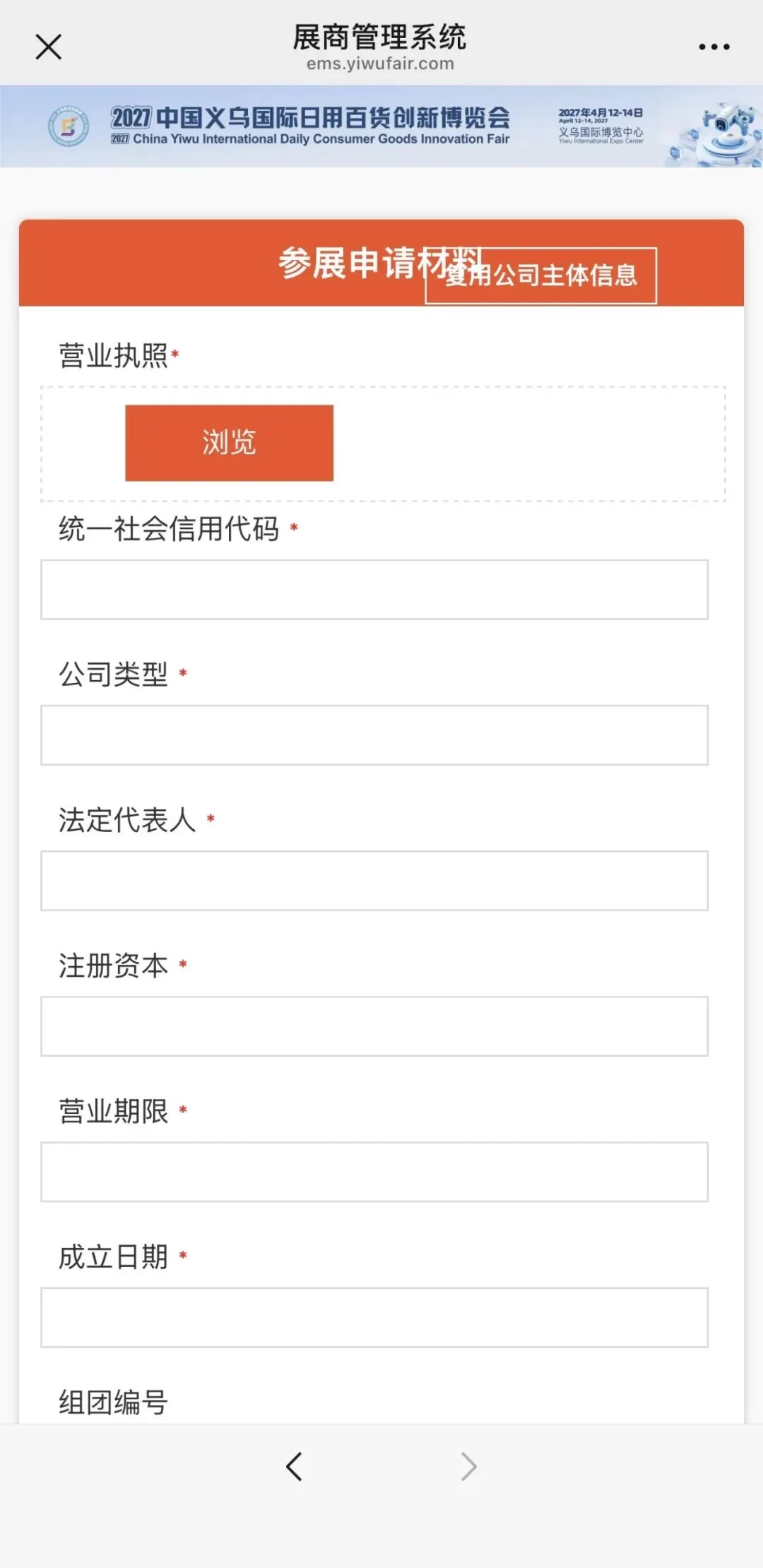 点击“我要参展”