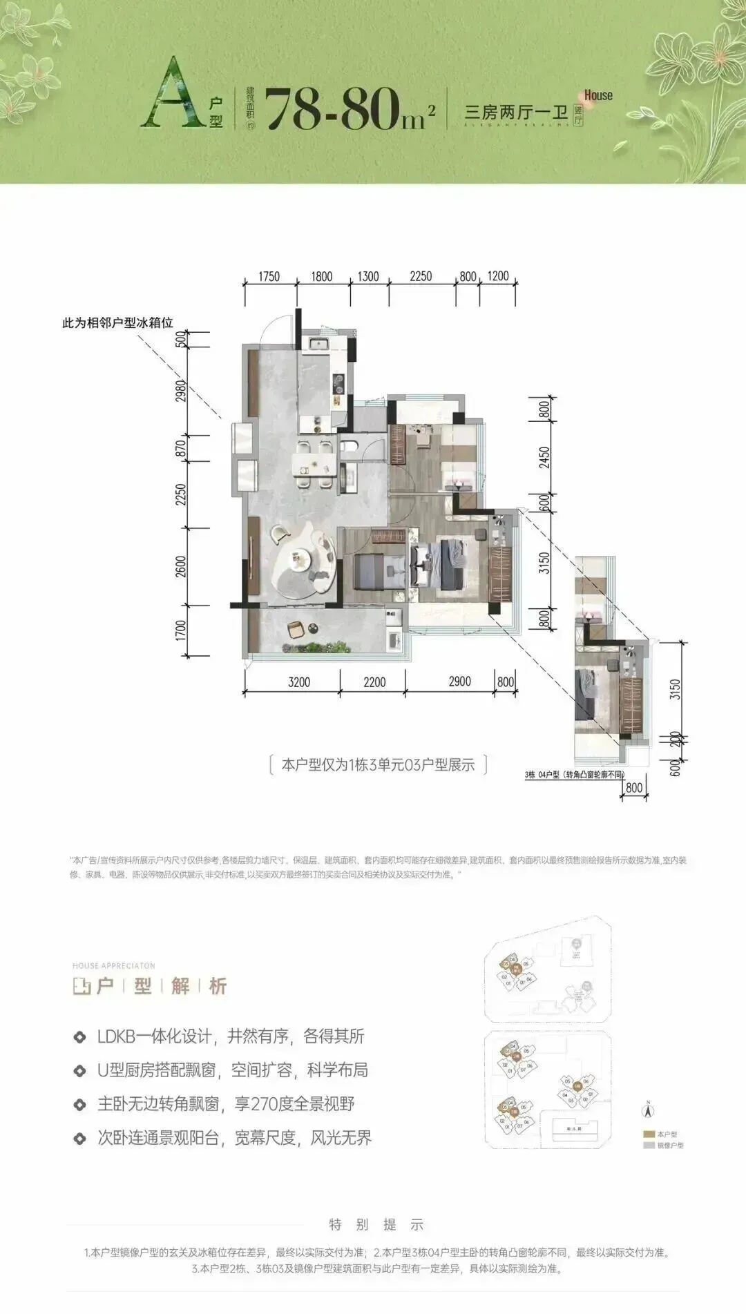 ① 80㎡(三房一卫)
