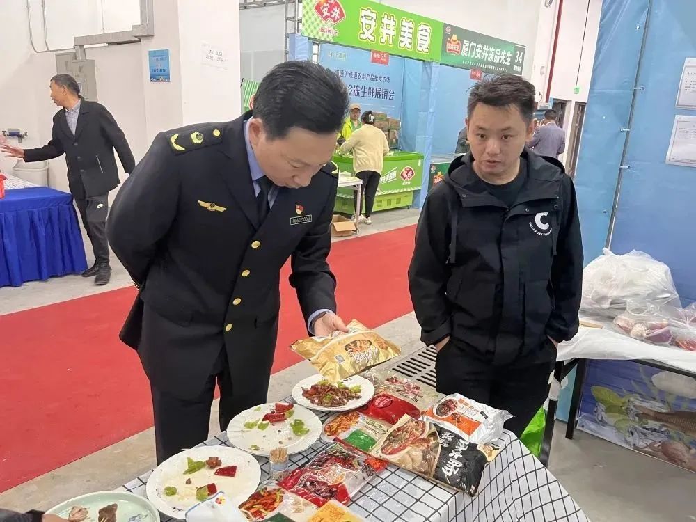 展销期间,崇开分局执法人员对参展的40余家经营单位开展全覆盖、拉网式检查。执法人员逐一检查现场食品经营摊位的证照办理情况,重点检查经营者是否严格落实原料索证索票、进货查验、食品贮存、从业人员健康管理等方面的制度要求,确保展销会顺利举行。