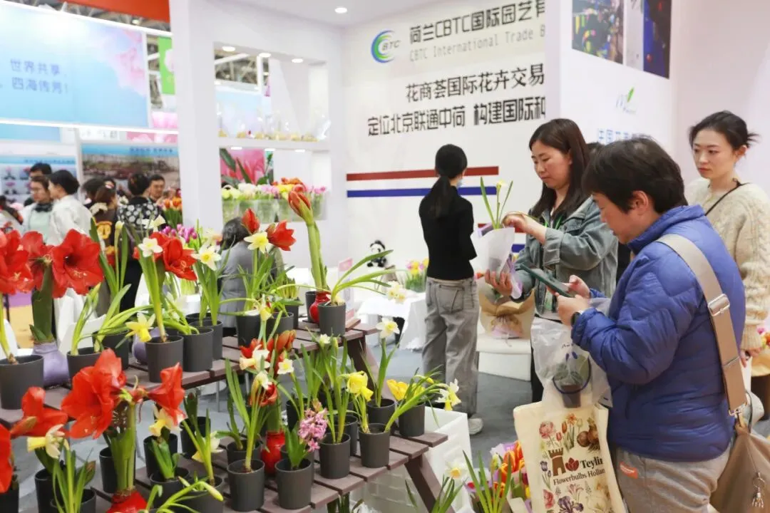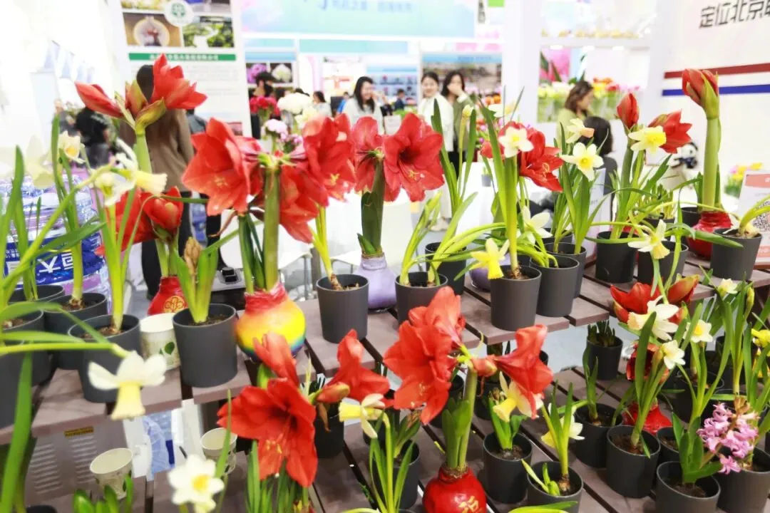 作为本届展会的重要参展力量,花乡花木集团旗下北京花商荟国际贸易有限公司携优质球根花卉新品亮相,展期持续3天。现场集中展出与荷兰深度合作的郁金香、风信子、洋水仙、蜡封朱顶红等进口精品,以及国泰、橙汁、初心、米鲁兹等十余款自主培育郁金香新品种,凭借优异品质与创新品种吸引海内外客商广泛关注。