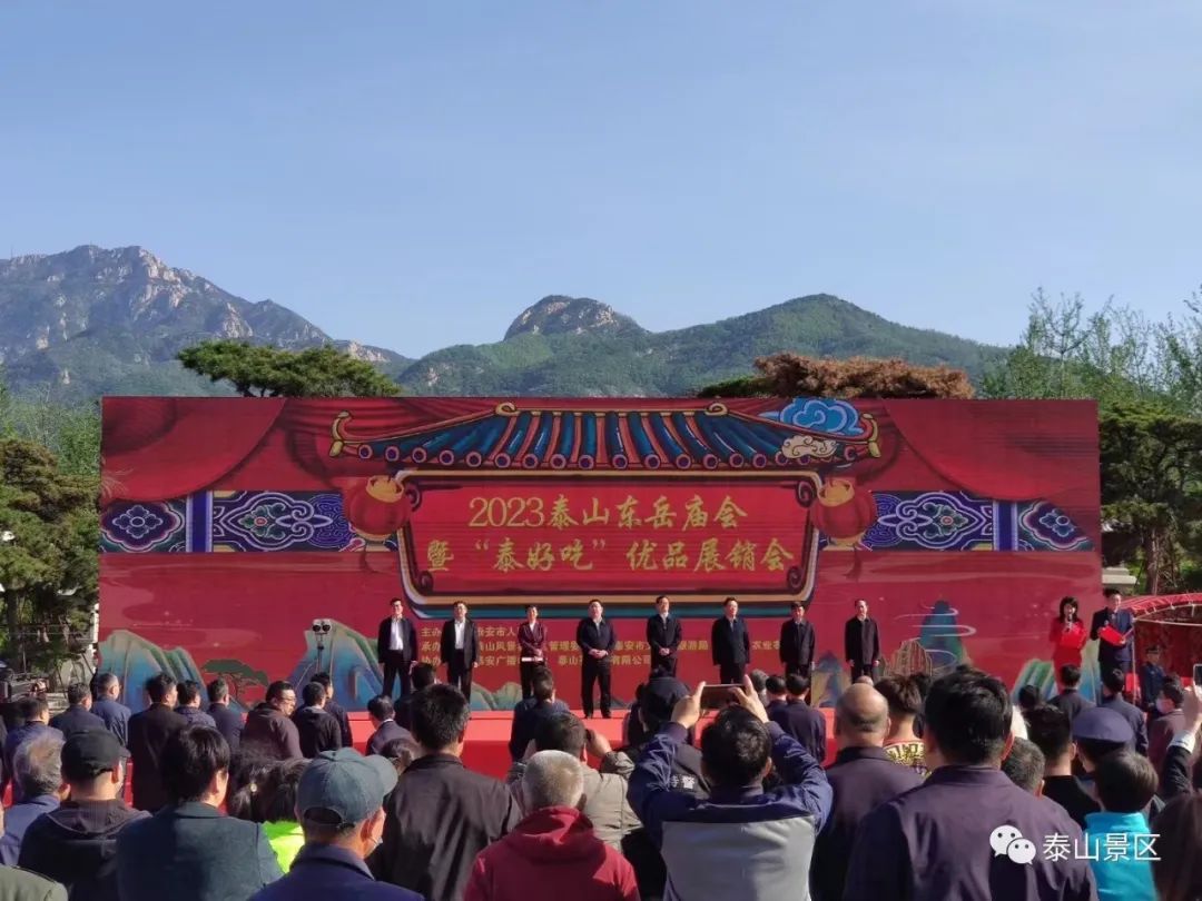 5月6日,以“真情泰山 欢乐庙会”为主题的“2023泰山东岳庙会暨‘泰好吃’优品展销会”在岱庙北广场隆重启会。本届庙会由泰安市人民政府主办,泰山风景名胜区管理委员会、泰安市文化和旅游局、泰安市农业农村局共同承办,泰安广播电视台、泰山茶文化有限公司联合协办。