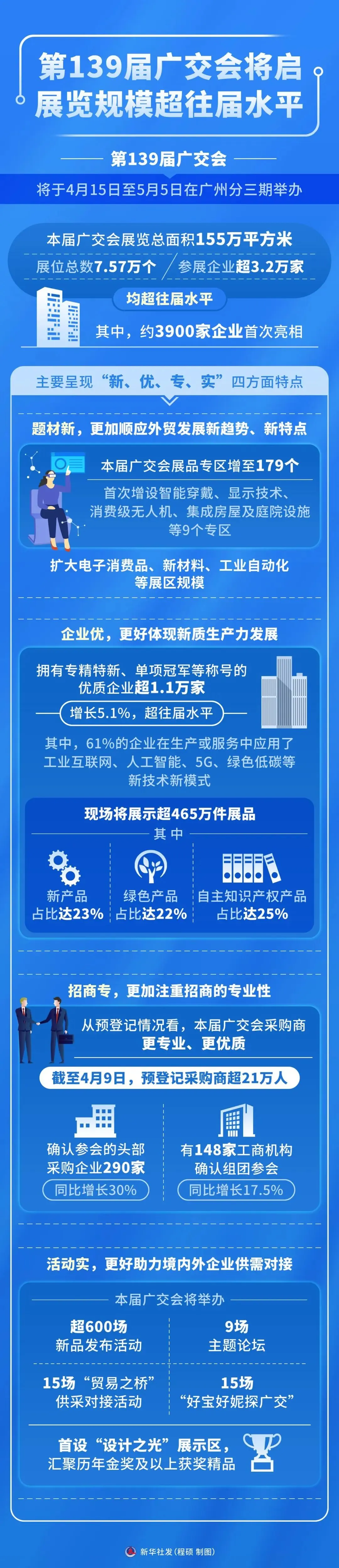 4月11日,新华社发布《第139届广交会将于4月15日至5月5日在广州分三期举办,商务部10日举行专题新闻发布会介绍有关情况》,内容如下: