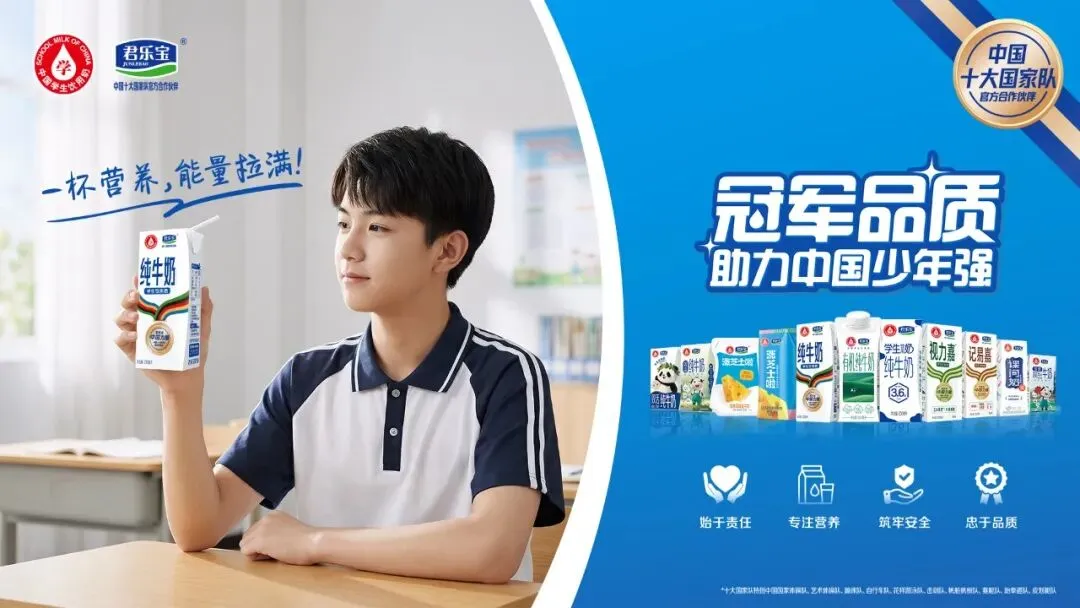 君乐宝乳业作为国家学生饮用奶定点生产企业,旗下全系学生奶产品以全产业链自控与 “六个世界级” 管理模式,为校园团餐提供专业营养守护,已服务全国守护近300万学子健康成长。