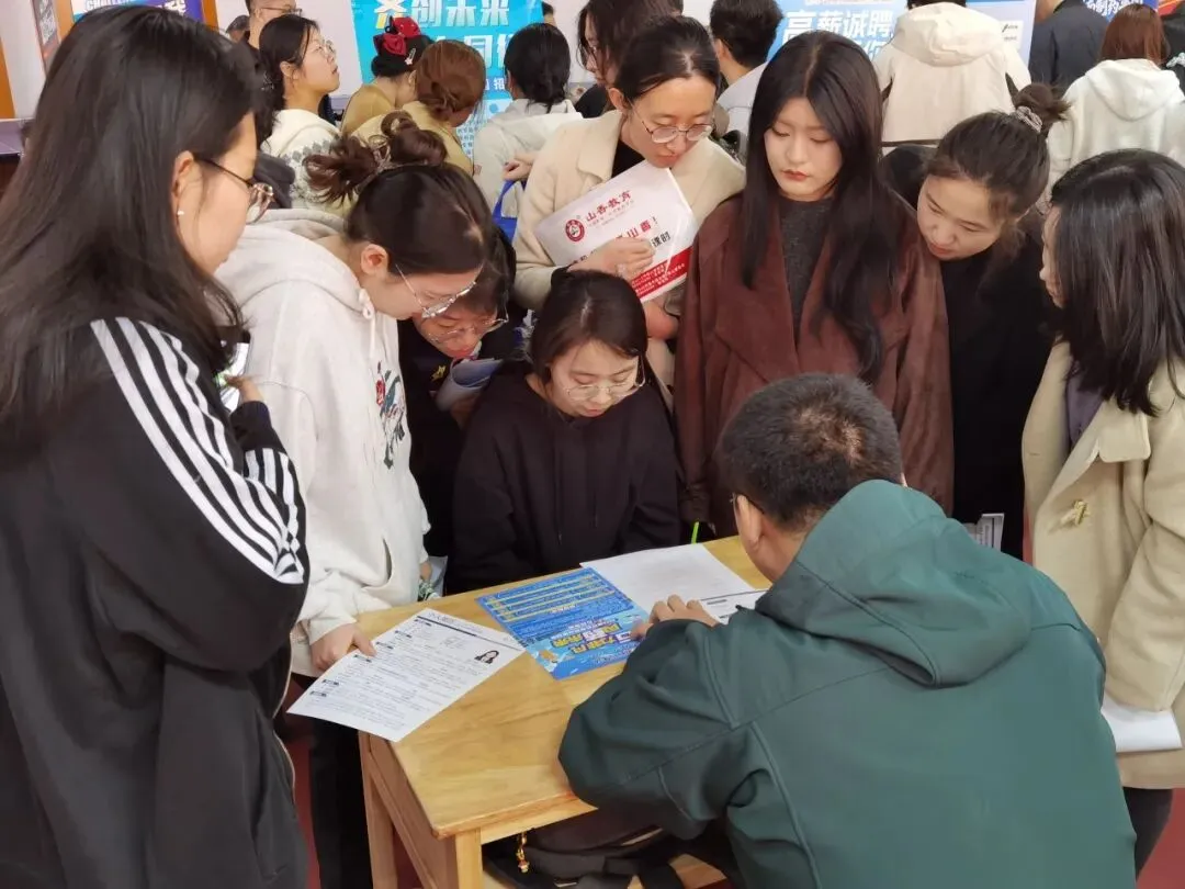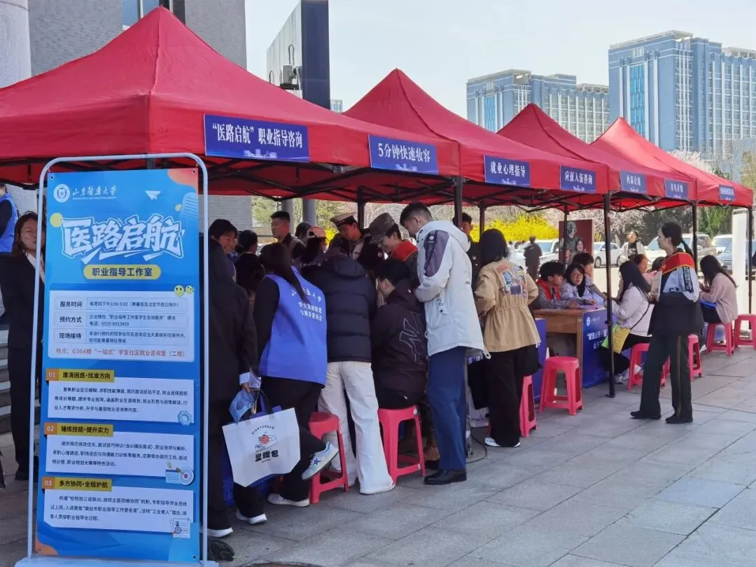 推介会结束后,“留在烟台·青春无忧”春季校园招聘会在大学生活动中心热闹开场。百余家用人单位整齐排开,涵盖生物医药、医疗器械、康养服务等多个领域。学生们手持简历穿梭于展位之间,有的仔细阅读岗位信息,有的与企业人事面对面交流。现场还设置了职业指导咨询摊位,为毕业生提供一对一答疑服务。整场招聘会下来,政策落了地,岗位也有了着落,学生们手里多了一份实实在在的机会。