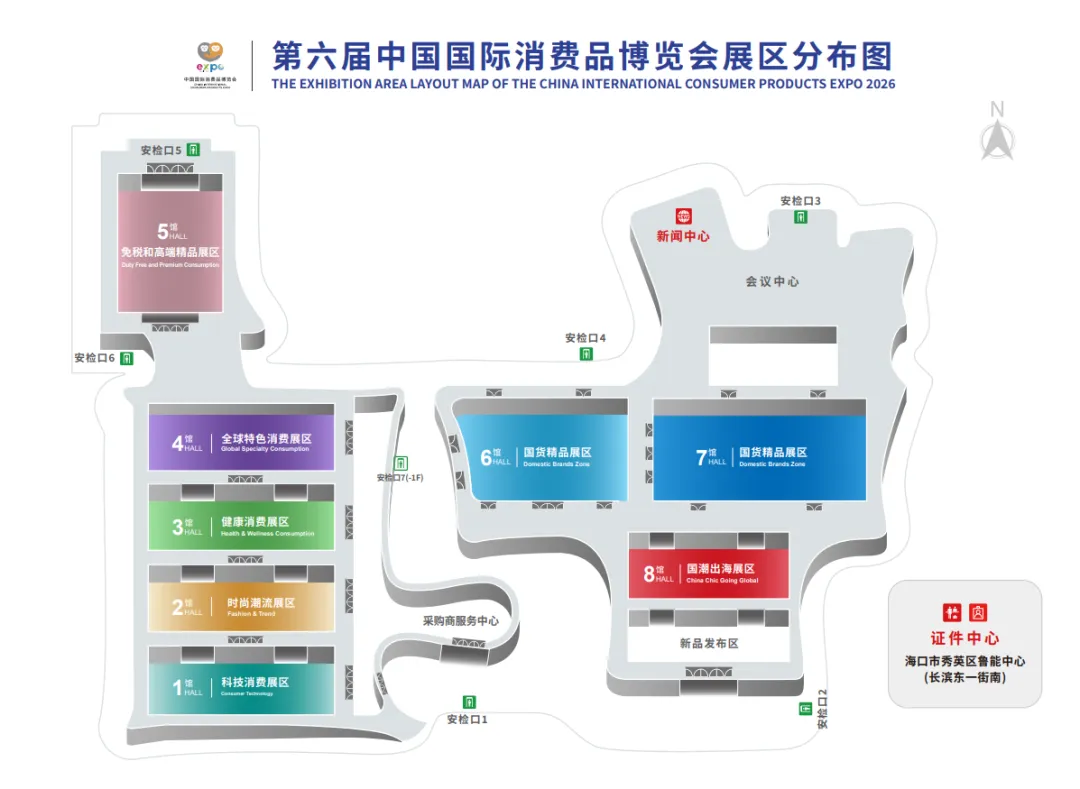 此外,5号馆免税与高端精品展区、6号馆国货精品展区、7号馆国潮出海馆、8号馆省市自治区展区,共同构成了本届消博会的全景图。