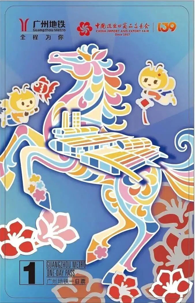 本次主题日票票面设计融合了广交会吉祥物、广交会展馆、广州地标建筑、广州地铁列车及马年生肖等元素,生动展现广州的商贸活力与城市风采,打造兼具实用性与纪念意义的城市名片。