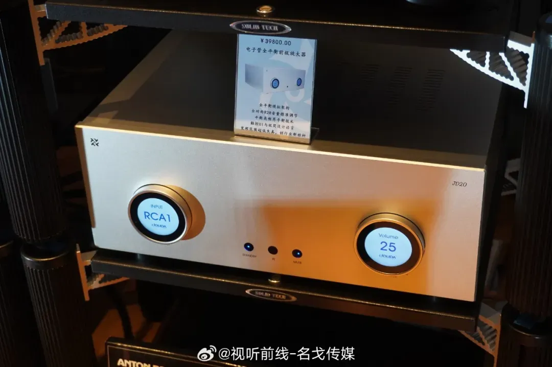 JOLIDA与南京威虹联合参展。JOLIDA朱利达带来JD20前级放大器首发,还有JD90电流模电子管推挽功率放大器,搭配ZINGALI Client Name 1.5 EVO音箱。