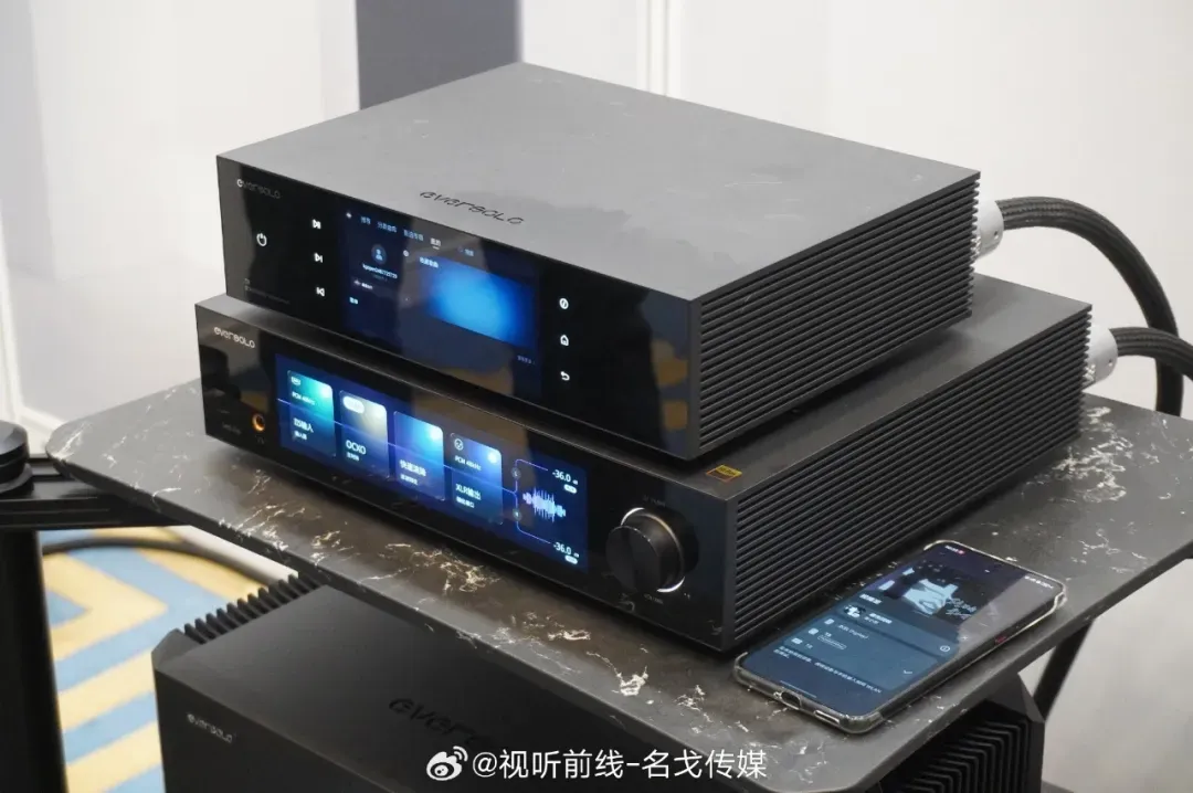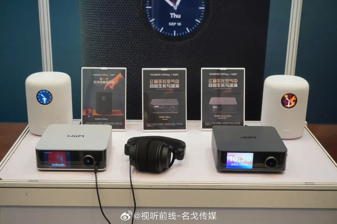 华为HiPlay联合多个国内外音响品牌,共同展示了其无线流媒体技术。包括有eversolo T8数字转盘、Z10解码、A10功放和PIEGA音箱展示无线互联场景