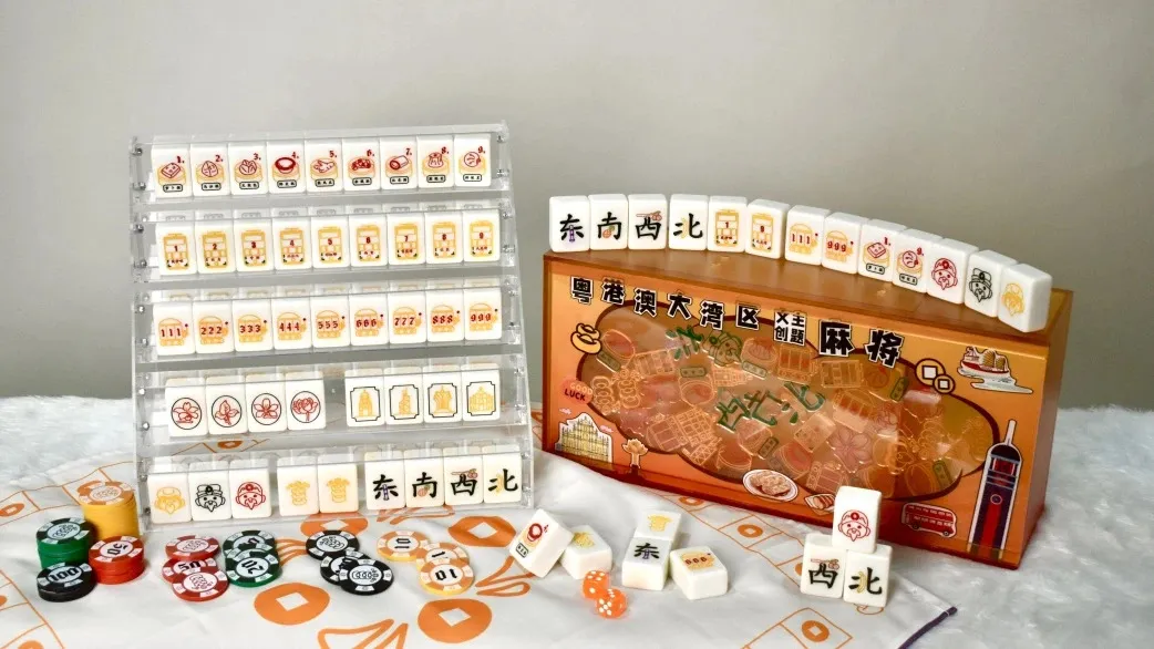 本麻将作品以粤港澳文化为灵感,牌面选取粤港澳大湾区的美食、建筑、植物等地区标志性元素;明丽的色彩与简约的插画一同表现了大湾区多姿多彩的文化活力。麻将不仅仅是一种游戏娱乐,更是一种文化符号。