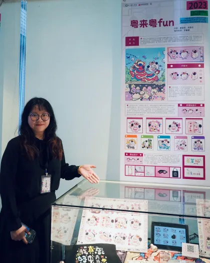 A:我们这个毕业展是从今年的五月份就开始筹备了,但是中间我们是经过了几次的改稿,因为我们最原始的IP并没有这么完善,后来通过每一次向老师反馈,然后老师也会逐个给出意见。就像我们最开始设计这个IP出来其实主要是想做粤语周边的,老师说可以考虑一下表情包,然后我们就创作了两个系列的表情包。总共到十月份,基本上持续了差不多四个月时间。