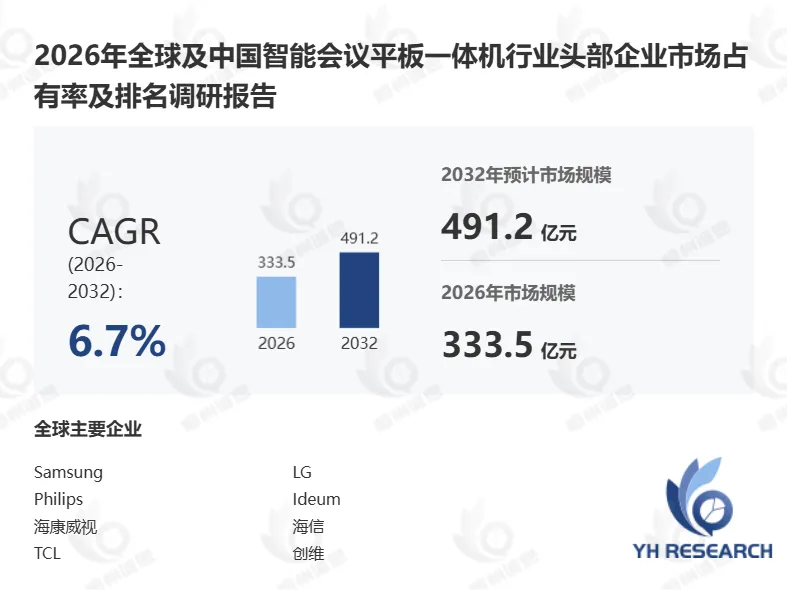 根据YH恒州诚思信息咨询调研统计,2025年全球智能会议平板一体机市场规模约319.6亿元,预计未来将持续保持平稳增长的态势,到2032年市场规模将接近491.2亿元,未来六年CAGR为6.7%。