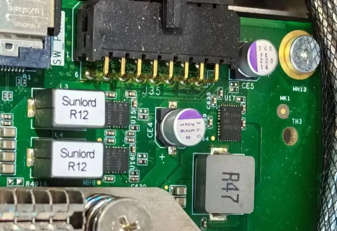 在CEC展示的服务器上,小编发现了国内友商的器件,没错,就是来自于消费类电感龙头—顺络电子的电感,大家感受一下!