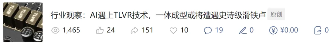 TLVR电感已经落实到AI领域了,传统的一体成型电感在AI的需求确实是断崖式下降;