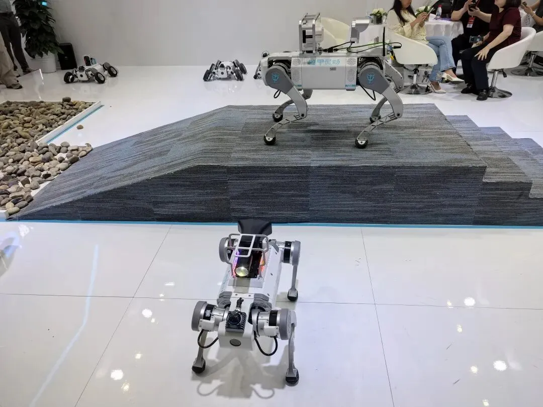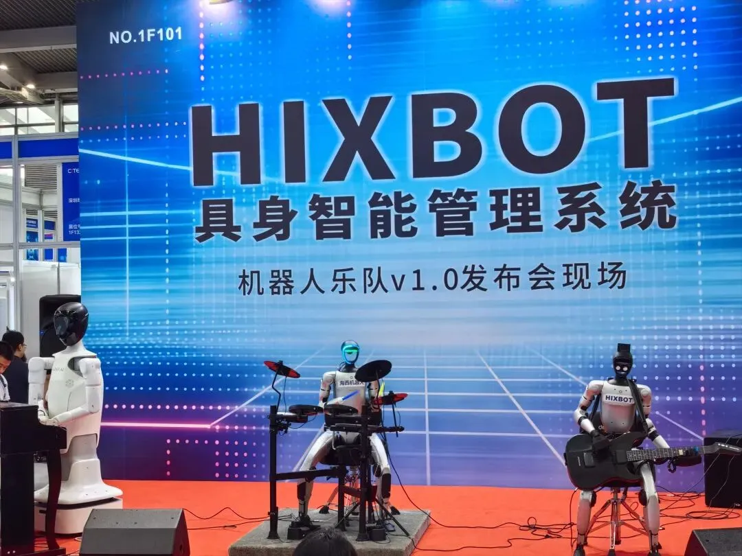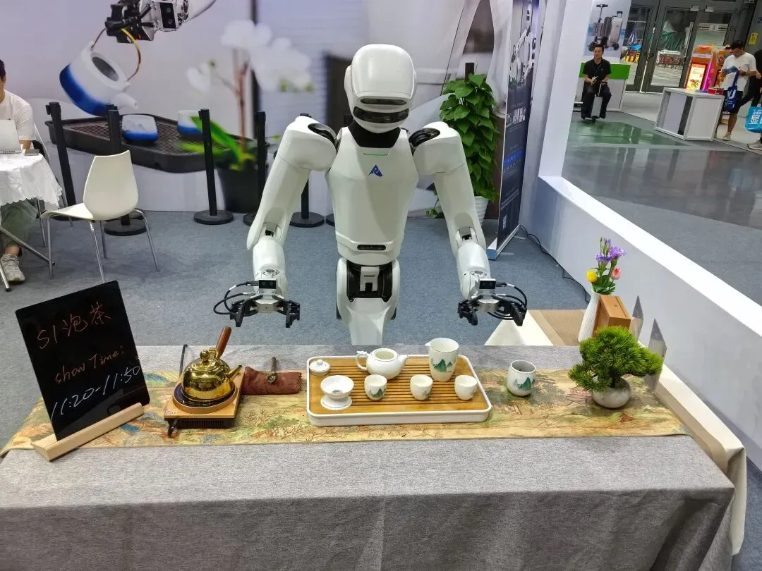 现场还有很多机器人表演,机器人乐队、机器狗和机器人茶艺等。