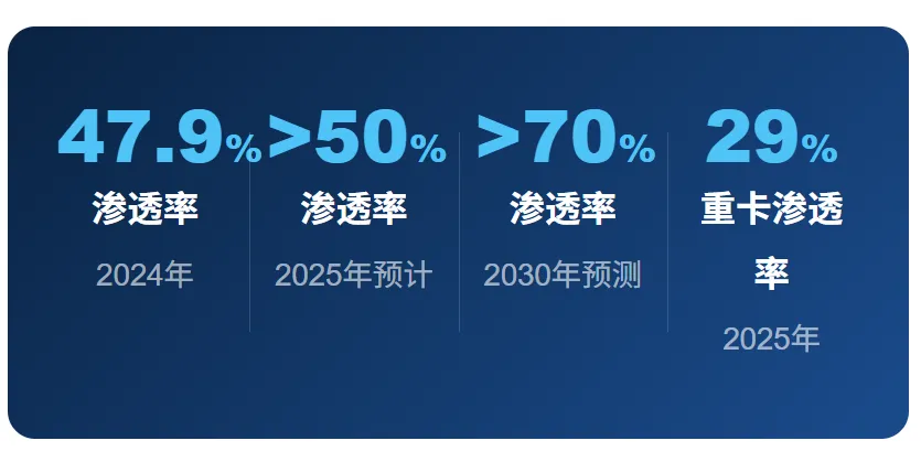 渗透率每年增长约8个百分点,乘用车已率先过半,商用车(重卡)成下一主战场。