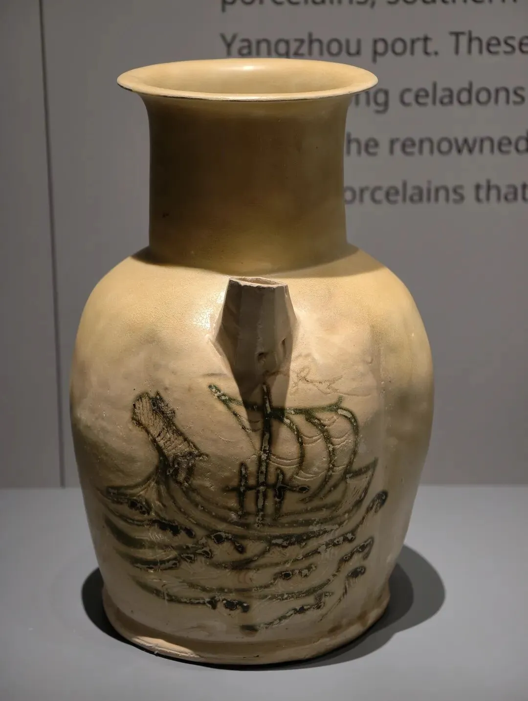 安史之乱后,陆路对外交通颇受阻滞,海上航线的重要性开始凸显,航运使大规模陶瓷贸易成为可能。得益于贯通南北的大运河系统,北方白瓷、南方青瓷、长沙窑彩瓷在南北水路交汇的节点 —— 扬州港汇聚,加上广州港附近的广东青瓷,构成当时贸易陶瓷的 “四组合”,大量输出海外。