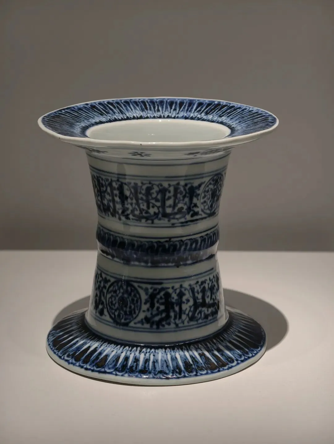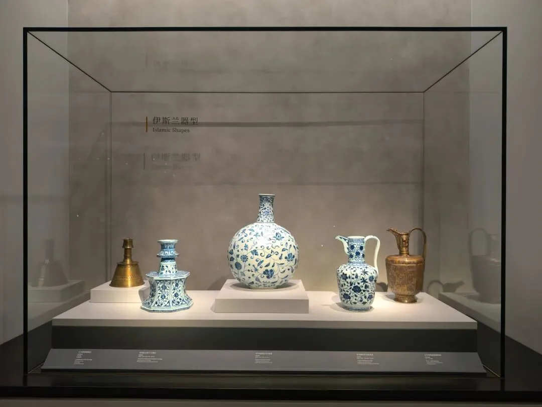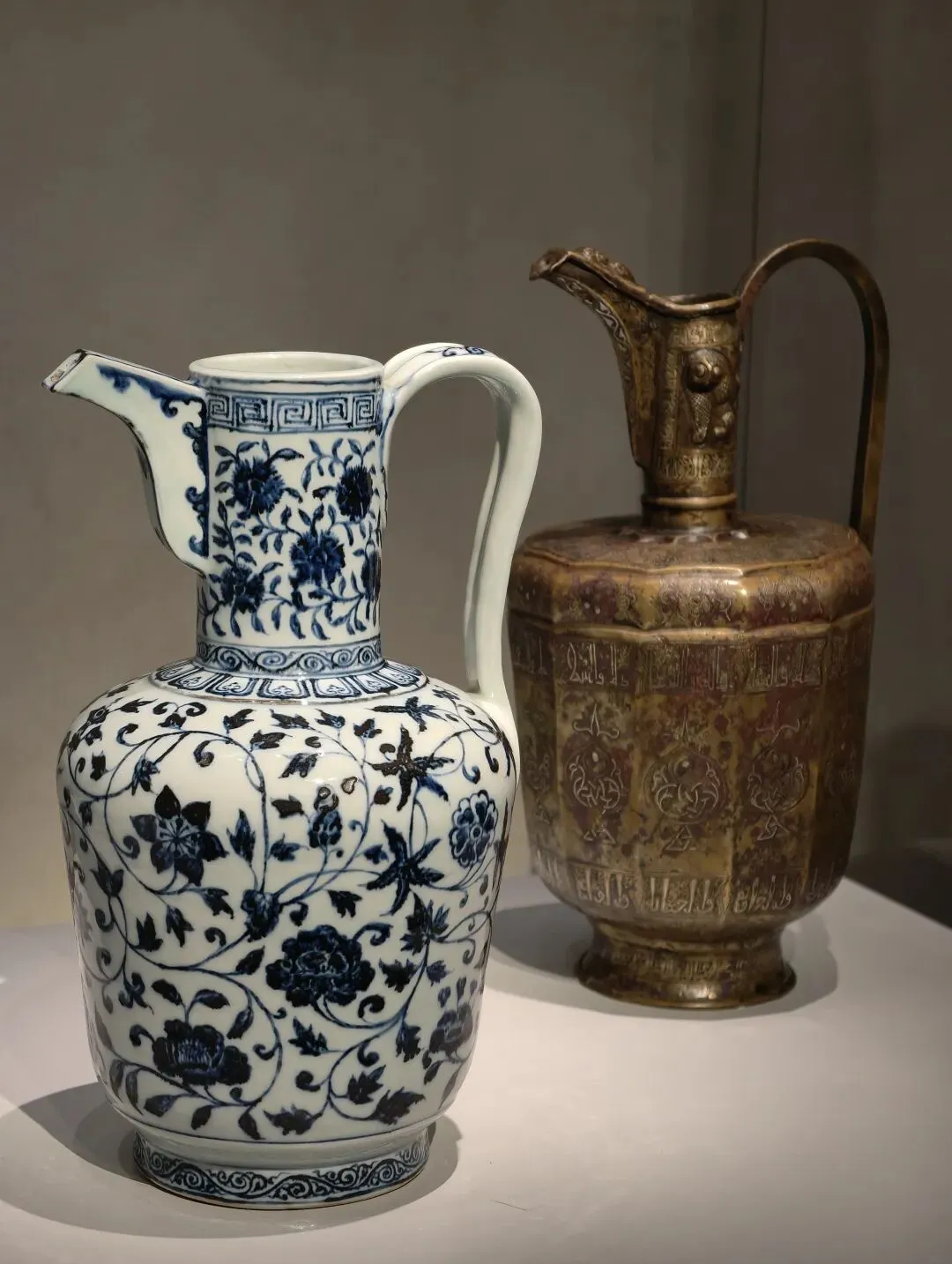 明初厉行海禁,禁止民间对外贸易,陶瓷多经由官方外交输出海外,以龙泉青瓷及景德镇青花为主。永乐、宣德时期,景德镇官窑更烧造了大量伊斯兰器型瓷器,随郑和船队及西行使臣馈赠海外,成为明代对外交往中的 “国礼”。