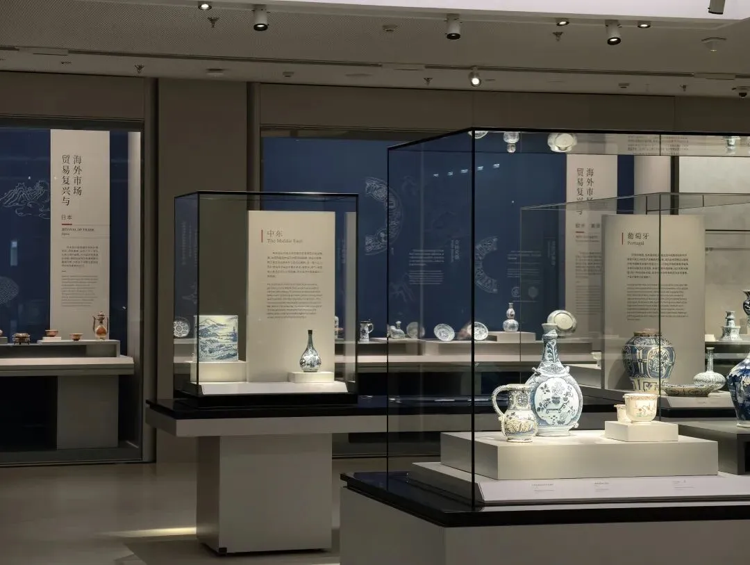 展厅设计得很好,灯光充足明亮,并以蓝色作为背景色,象征着海上丝绸之路。展览的最后一部分介绍了许多国家也开始学着中国烧制自己的瓷器,非常有意思,可以对比一下中国流行的器型和那些国家烧出的器物。