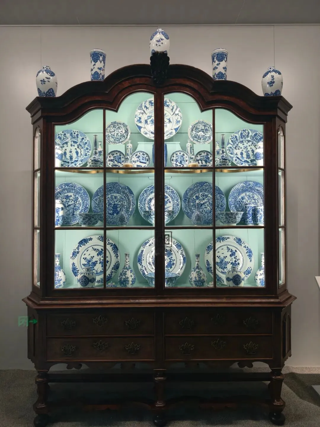 17 世纪中叶起,输入欧洲的中国瓷器数量增加,欧洲出现了许多瓷器厅室。王公贵族以大量瓷器装饰墙面,凸显巴洛克室内装饰的规律与美感。18 世纪开始,审美风尚发生变化,中国瓷器的使用阶层也进一步扩大,瓷器更多地出现在陈列柜、家具和壁炉上。陈列柜内摆放的瓷器体现了藏家的财富和声望,藏品排列的对称性、平衡性和韵律节奏也体现了收藏者的品位与审美情趣。