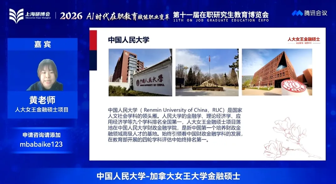 中国人民大学-加拿大女王大学金融硕士黄老师分享