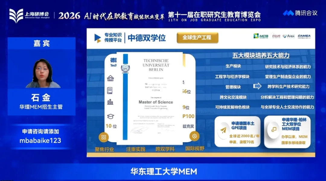 2026年4月11日,第十一届在职研究生教育博览会在线上成功举行。本次大会以「AI 时代 - 在职教育赋能职业变革」为核心主题,紧扣 AI 浪潮下职场人才发展新需求。为探索人工智能浪潮下在职教育的创新发展路径,以优质教育资源赋能职场变革与人才升级。