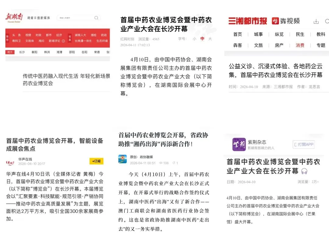 本届博览会受到新华社、人民网、中新社、湖南卫视、湖南日报等30余家中央及省内主流媒体、专业行业媒体以及抖音等新媒体平台的广泛关注。与会专家评价其为“我国首个聚焦中药农业全产业链的专业博览会,论坛规模与展会影响均创同类之最”。参展商与专业观众一致认为这是一场规格高、专业强、成果实的行业盛会,更有展商迫不及待纷纷提前预订明年的展位。