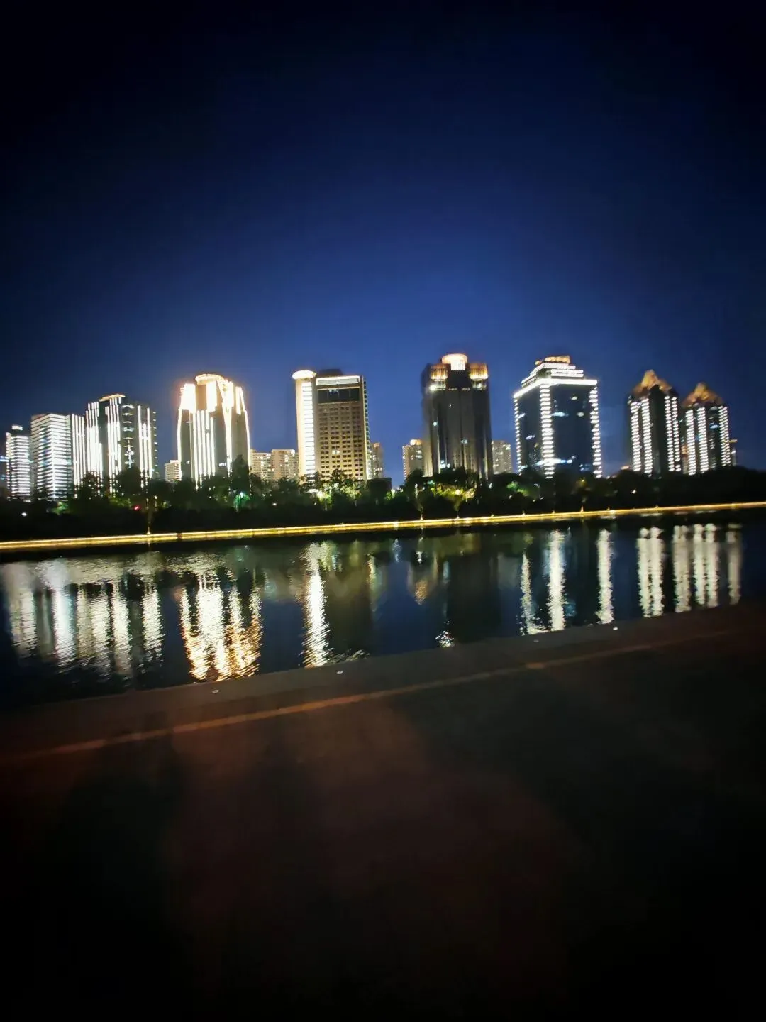 的光影一同倒映在水中,交织出流动的光彩。晚风轻拂,湖面涟漪缓缓荡漾,仿佛在低语着这座城市的安宁与繁华。人们在湖畔漫步,或驻足观赏,或轻声交谈,让这静谧的夜色更添几分温馨与生机。这里是都市中一片难得的宁静所在,在霓虹闪烁间展现着郑州这座现代城市的优雅与活力。