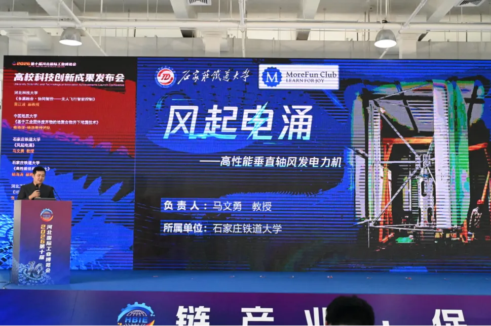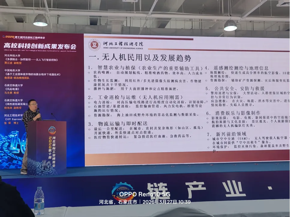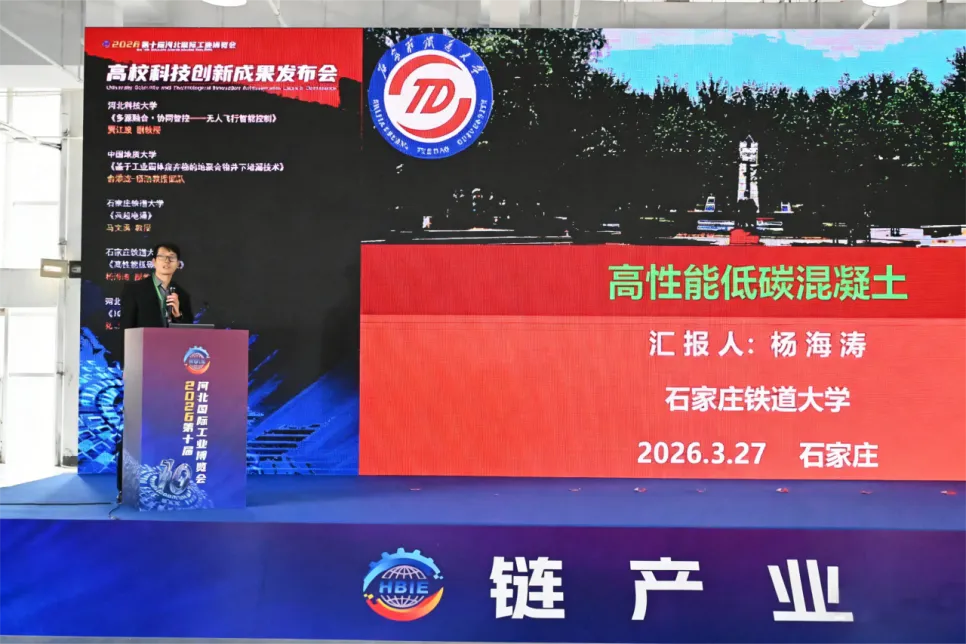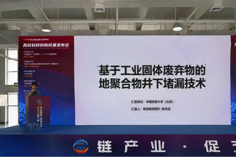 河北科技大学贾江波博士发布《多源融合・协同智控——无人飞行智能控制》;中国地质大学杨浩教授团队成员俞添泷博士发布《基于工业固体废弃物的地聚合物井下堵漏技术》;石家庄铁道大学马文勇教授发布《风起电涌》,杨海涛副教授发布《高性能低碳混凝土》;河北工程技术学院张琛博士发布《ICT Express》。四位教授分别介绍了团队的最新科研成果,展现了高校在智能制造、新材料、绿色低碳等领域的创新实力。