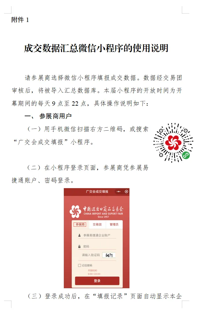 (一)用手机微信扫描下方二维码,或搜索“广交会成交填报”小程序。