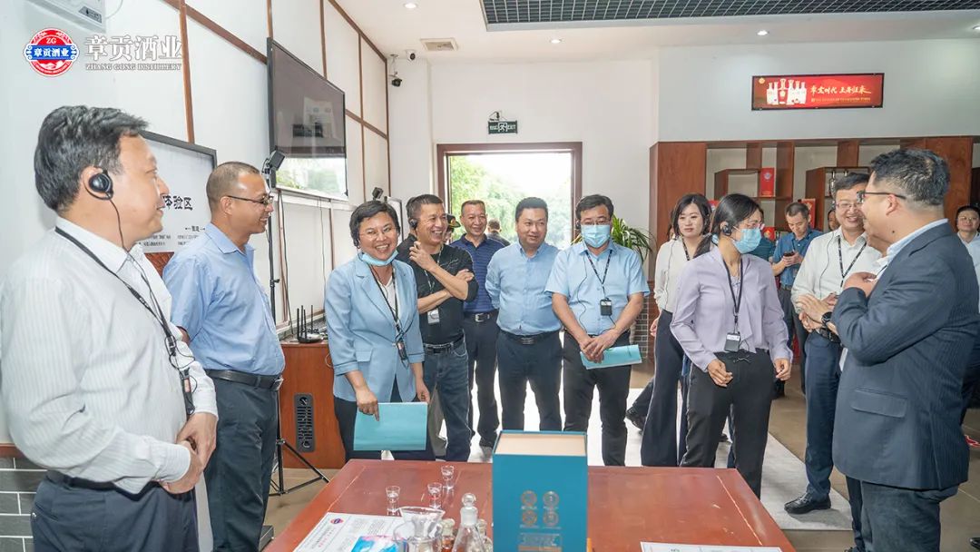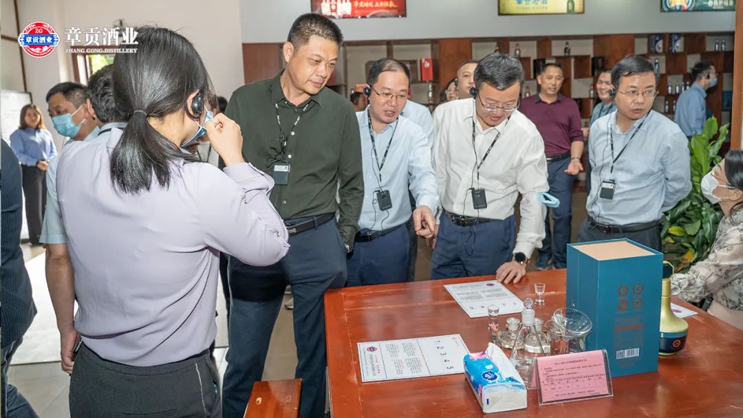 期间,市监局局长一行参观了章贡酒文化体验馆,认真听取了章贡的酿造技艺并品鉴了章贡赣香白酒,与会领导对一口三香“浓头酱尾米中间”的赣香口感表示称赞。黄局长勉励章贡酒业,坚守食品安全至上原则,传承历史和古法技艺,酿造更优质美酒,力争上游,不断把企业做大做强。