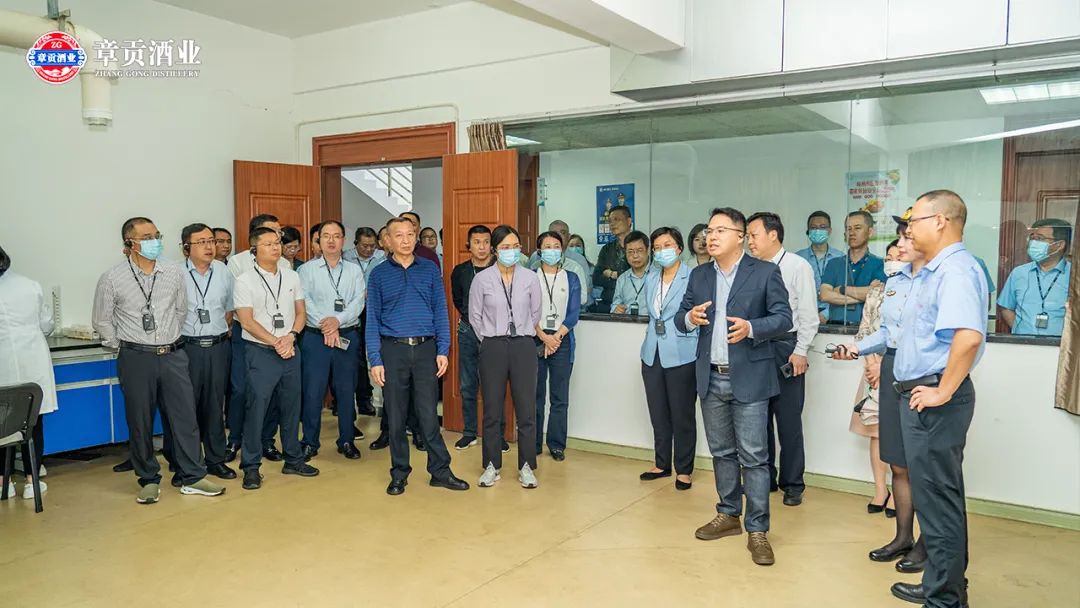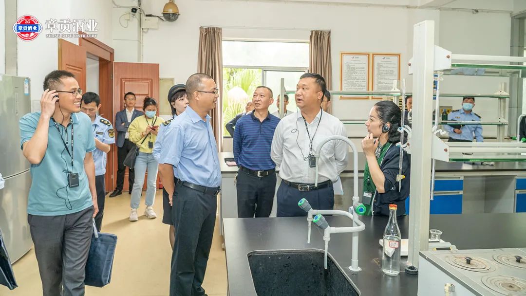 同时进入到化验室,对白酒检测环境、设备等情况进行现场检查与评估,进一步了解章贡酒业食品管理、质量安全等方面工作开展情况。