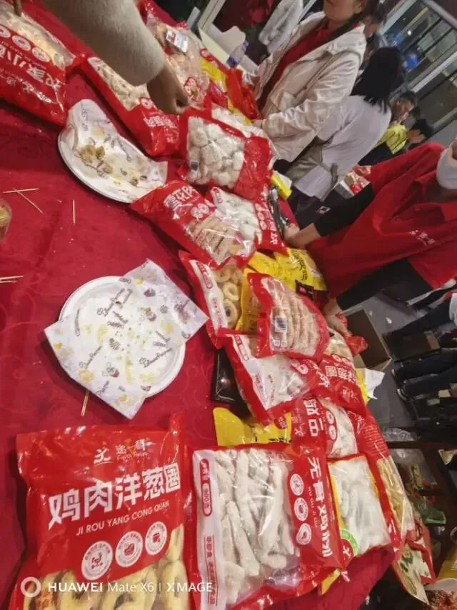 兰陵人更喜欢兰陵递一棒,看展厅前挤满了人,兰陵递一棒的展台上放着好多盘试吃的鸡肉串,服务人员不厌其烦地热情地介绍,好多人都在试吃和购买第一棒的食品。
