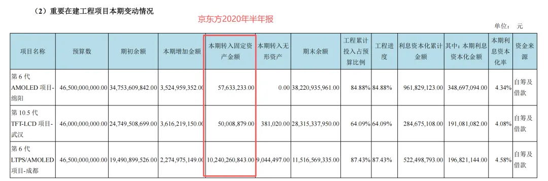 我查了下京东方2020年的半年报,虽然2020年上半年,成都B7转固了100多亿,但2020年的巨额转固,集中在2020年下半年。还有,当年收购中电熊猫两条线(南京B18、成都B19)的转固时间,正好卡在2020年底。