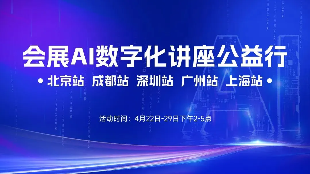 会展AI数字化公益行--北京、成都、深圳、广州、上海,5站日期和地点如下: