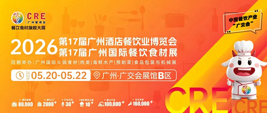 2026·CRE广州餐博会将于5月20-22日在广州·广交会展馆B区举办!本届展会以全链条展品矩阵与高规格同期活动为依托,为全球餐饮从业者搭建趋势洞察、供应链优化、增长路径探索的一站式价值平台,助您精准抢占华南市场新风口。